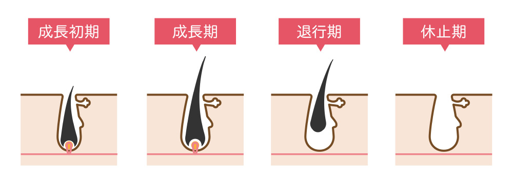 1. 成長初期(脱毛効果が高い):毛根にある毛母細胞が活性化して新しい毛が誕生する時期
